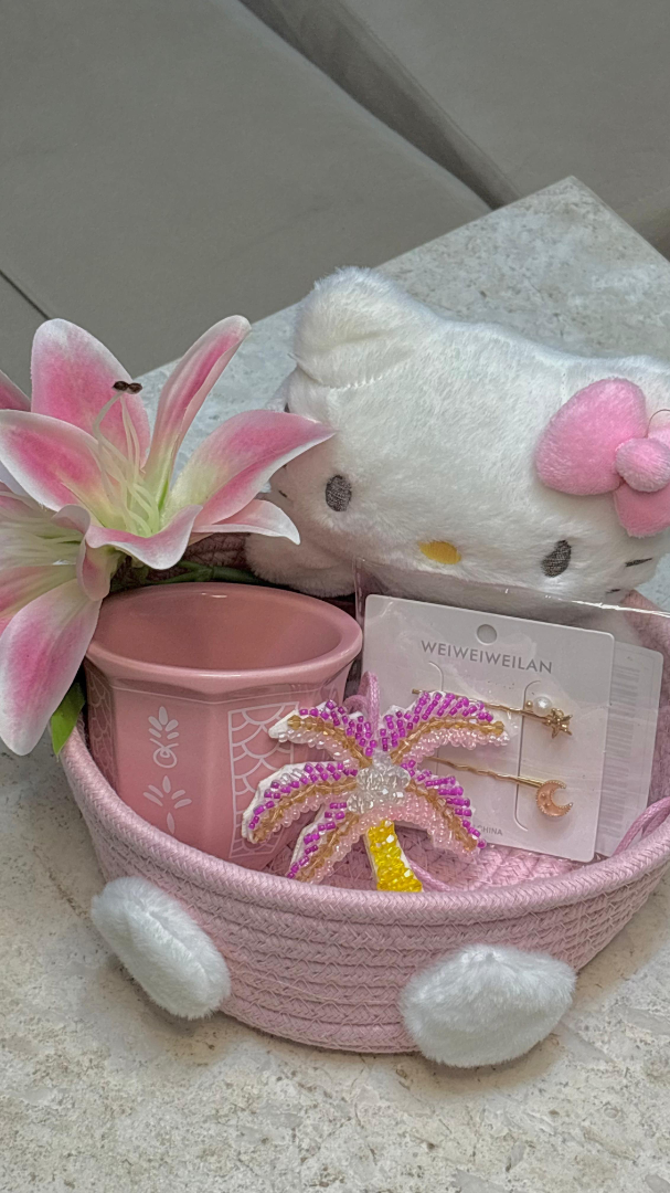 ورد ليليوم ، كوب ، اكسسوارات شعر ، ميدالية ، سجادة صلاة ، اضافة مصحف حسب الرغبه
